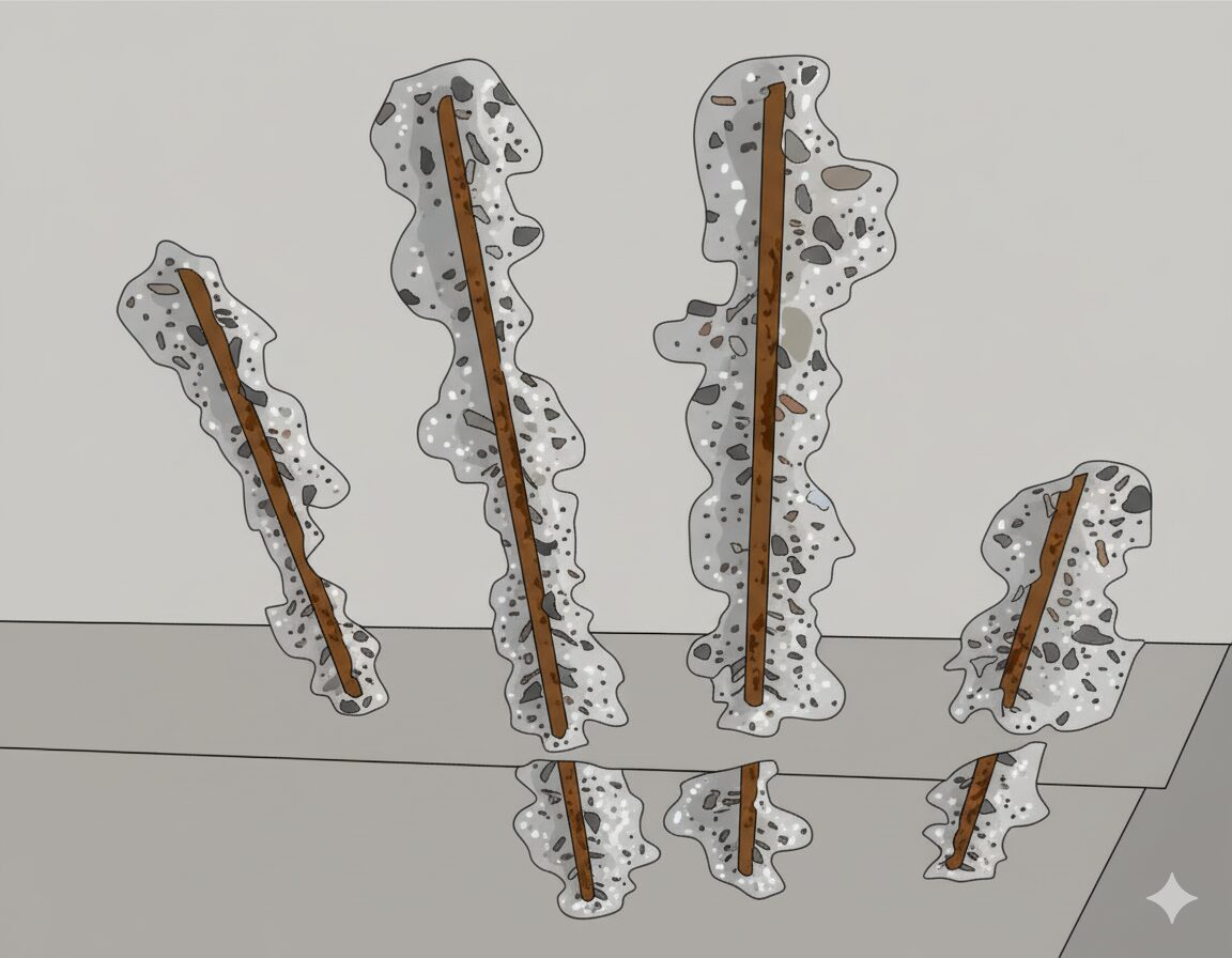 2. 鉄筋の錆が大きくなり膨張するとコンクリートがひび割れる
