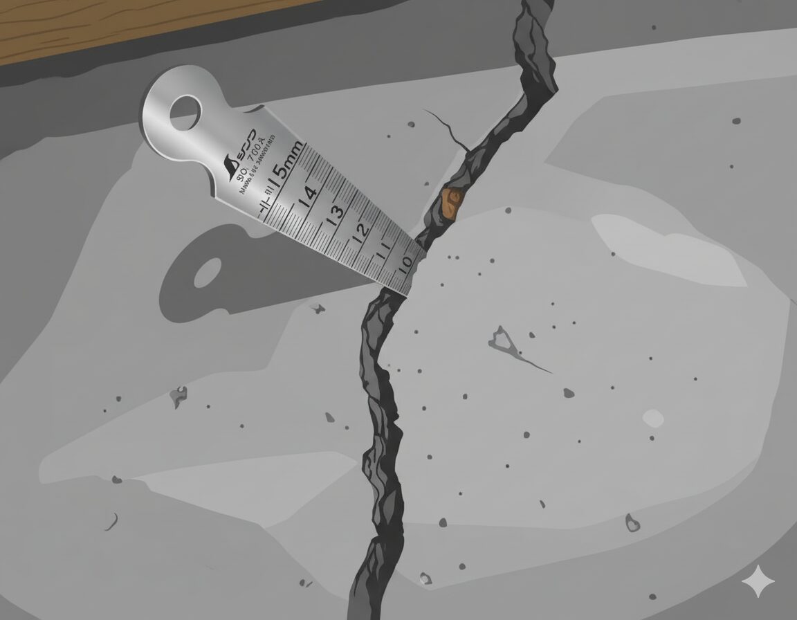 「大丈夫?」基礎のひび割れの原因と補修方法をイラストで解説するアイキャッチ画像。この記事では、家の寿命と安全に直結する基礎のひび割れの許容範囲と、適切な対処法を分かりやすく紹介します。
